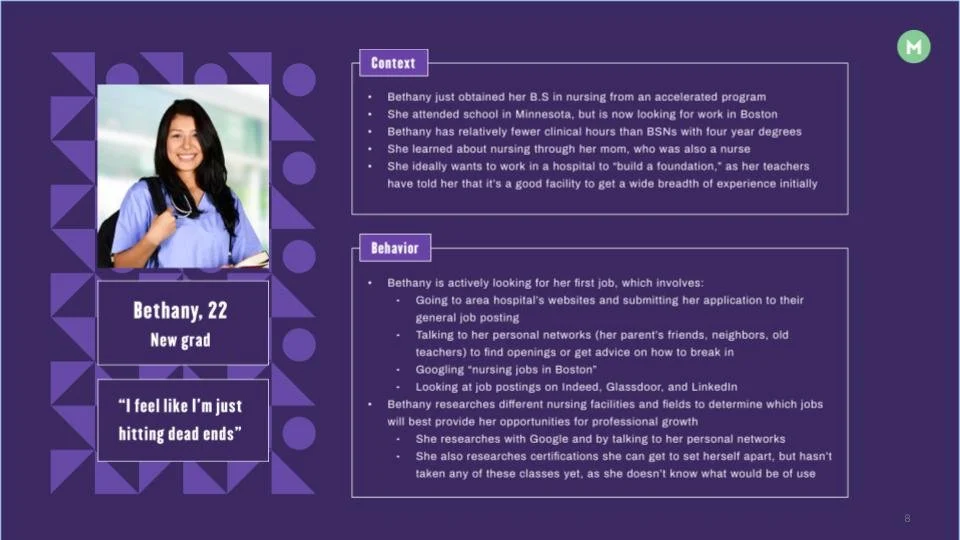 We talked to dozens of nurses, and distilled it into three personas at different career stages.